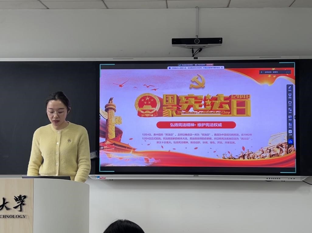 冬日暖阳,法治之光。12月20日下午2点,yl8cc永利官网研究生学硕二党支部在鉴一教学楼202教室举行了一场意义深远的宪法教育实践活动。本次活动以“弘扬宪法精神,维护宪法权威”为主题,旨在深化党员同志对宪法精神的理解和实践,强化法治意识,促进经济与法治的有机结合。在党支书诸育杰的精心组织和热情宣讲下,活动正式拉开序幕。