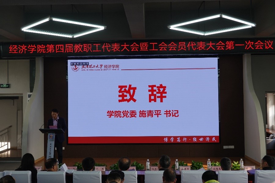 施青平书记致开幕词,他向大会的召开表示热烈的祝贺,向第三届教职工代表大会的全体代表和全体教职员工过去五年来的辛勤工作表示衷心的感谢!他总结了过去五年加强教职工思想政治引领、推进民主政治建设、加强师德师风建设、开展丰富多彩的群体活动、打赢疫情防控阻击战等方面的有效做法和取得的成绩。希望各位代表以饱满的政治热情、强烈的主人翁意识,认真履行自己的神圣职责,把大会开成一个民主团结、求真务实的大会,统一思想、凝聚智慧的大会,振奋精神、鼓舞士气的大会,以实际行动向建党100周年献礼!