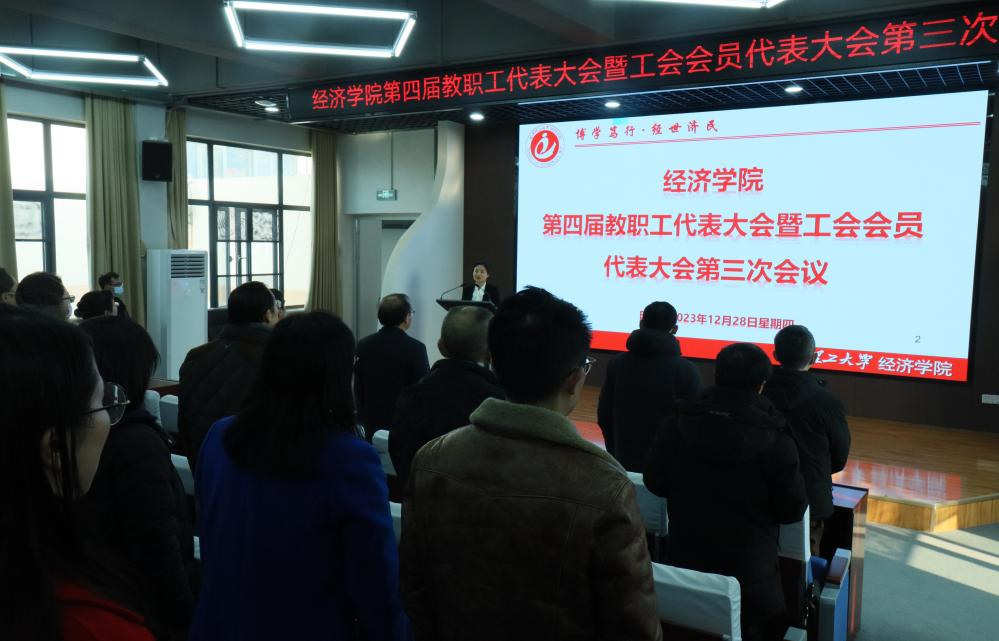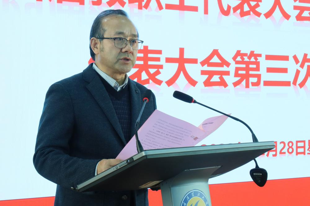 12月28日,经过精心筹备,yl8cc永利官网第四届教职工代表大会暨工会会员代表大会第三次会议在鉴湖报告厅隆重召开。yl8cc永利官网第四届教代会正式代表、特邀代表、列席代表共48人参加会议。会议由大会执行主席乔云莉同志主持。