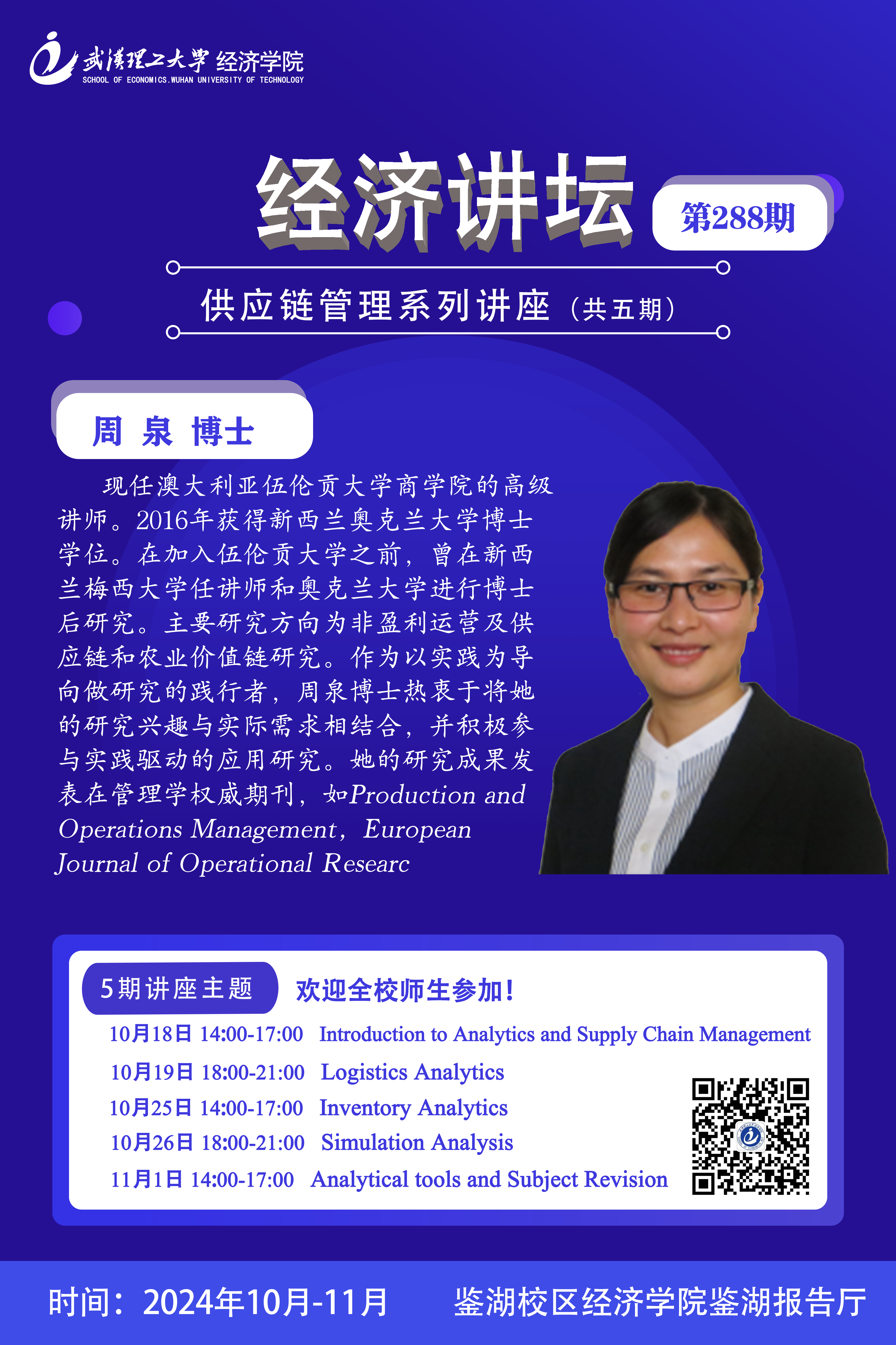 【yl8cc永利官网】第288期 周泉博士——供应链管理系列讲座